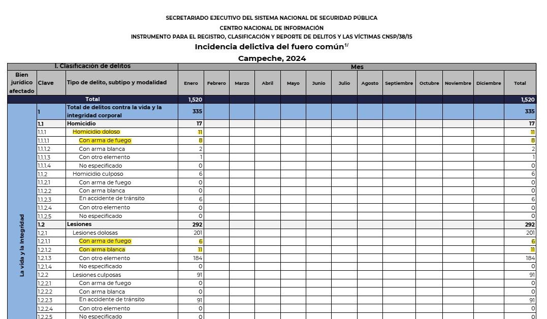 LA DELINCUENCIA SE ASIENTA EN TODO EL ESTADO, EL NARCOMENUDEO SE INCREMENTA EN UN 46%, Y ADEMÁS EL MES DE ENERO DE ESTE 2024 HA SIDO EL MÁS VIOLENTO EN COMPARACIÓN DEL AÑO PASADO AL SUPERAR UN 10% EL DELITO DE HOMICIDIO DOLOSO, DE ACUERDO CON LA ESTADÍSTICA DE SECRETARIADO EJECUTIVO DEL SISTEMA NACIONAL DE SEGURIDAD PÚBLICA Y EL SEMÁFORO DELICTIVO DE CAMPECHE. 2