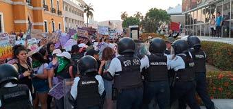 La manifestación llegó hasta la calle 8 justo en donde se encuentra el Palacio de Gobierno en donde se encontraban estructuras de madera. Cuando parecía que la protesta llegaría a su fin, algunas mujeres brincaron a los antimotines.