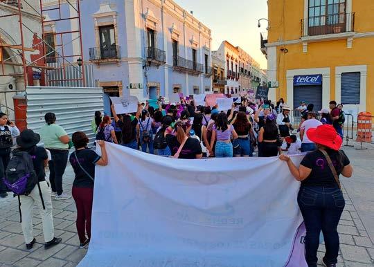 Marchan mujeres en Campeche con motivo del 8M en donde algunos edificios se vieron dañados por la manifestación de cientos de mujeres.