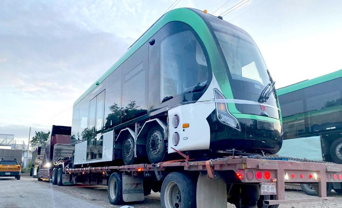 La unidad de prueba para el proyecto del Tren Ligero en Campeche, que arribó desde la ciudad de Monterrey, Nuevo León, ya luce los colores del Tren Maya, lo anterior resaltó tras el ensamblaje del vehículo en la zona de estacionamiento del Centro de Convenciones y Exposiciones Campeche XXI y que fue supervisado por las autoridades campechanas.