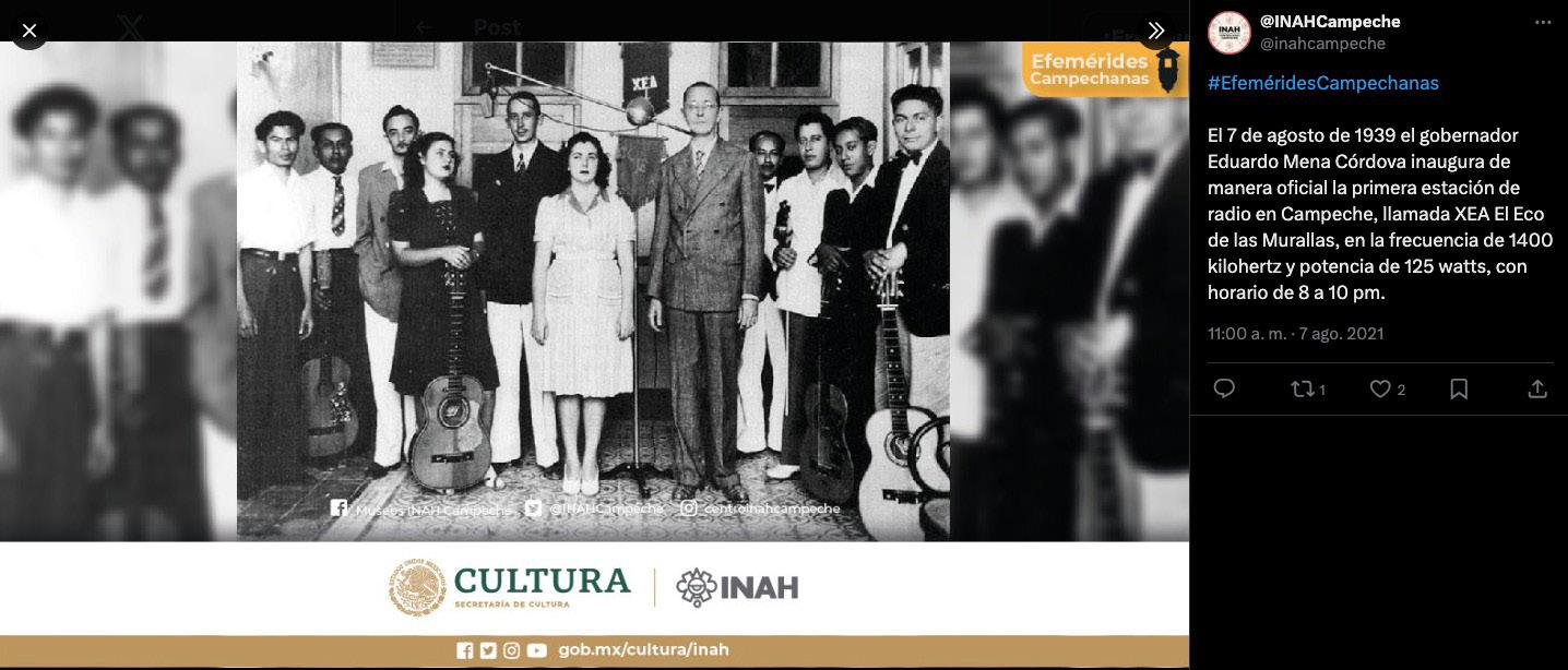 El 7 de agosto de 1939 el gobernador Eduardo Mena Córdova inaugura de manera oficial la primera estación de radio en Campeche, llamada XEA “El Eco de las Murallas”, con la frecuencia 1370 kilohertz.