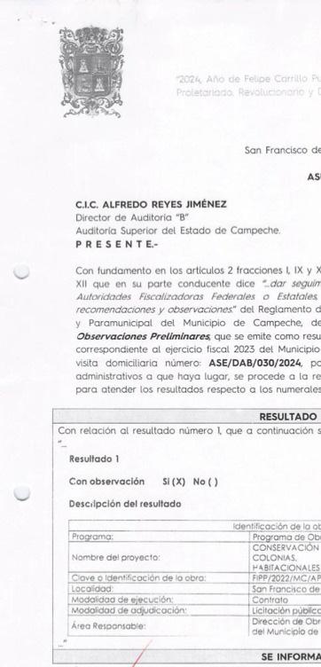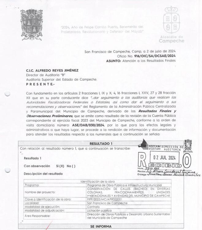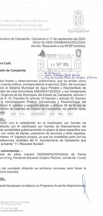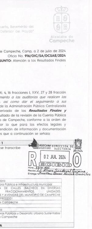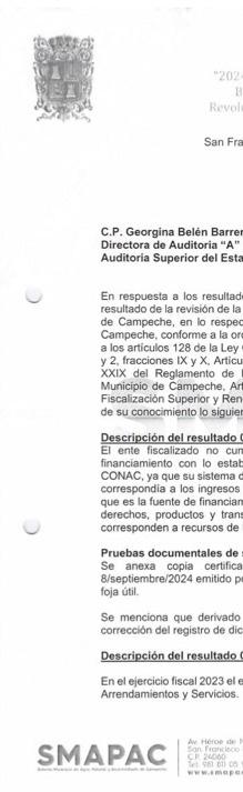 LA AUDITORÍA SUPERIOR DEL ESTADO DE CAMPECHE (ASECAM), QUE HOY ES PRESIDIDA POR GUADALUPE ESTHER CÁRDENAS GUERRERO, DETECTÓ UN POSIBLE DAÑO PATROMONIAL DE $19 MILLONES 320 MIL 524.14 PESOS AL AYUNTAMIENTO DE CAMPECHE, QUE ES LIDERADO POR LA ‘EMECISTA’ POR BIBY RABELO DE LA TORRE. LA ASECAM ASEGURA QUE ESTOS RECURSOS NO JUSTIFICADOS SE DIVIDIERON A TRAVÉS DE TRES ENTES AUDITADOS: INGRESOS LOCALES Y FINANCIAMIENTOS, FONDO PARA INVERSIÓN PÚBLICA PRODUCTIVA DEL MUNICIPIO DE CAMPECHE Y SISTEMA MUNICIPAL DE AGUA POTABLE Y ALCANTARILLADO DE CAMPECHE SMAPAC.