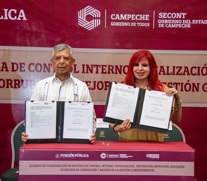 La Secretaría de la Función Pública (SFP) y el Gobierno del Estado de Campeche suscribieron un acuerdo de coordinación en materia de control interno, fiscalización y mejora de la gestión gubernamental, así como un convenio para compartir con la entidad la plataforma informática para realizar la verificación aleatoria de las declaraciones patrimoniales de las personas servidoras públicas de la entidad.