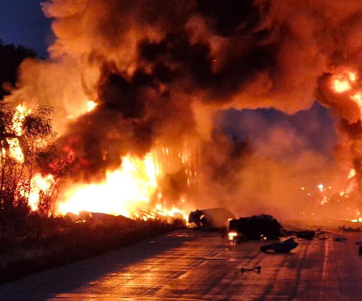 Luego del encontronazo entre las tres unidades de carga, se generó una explosión y surgieron llamaradas que alcanzaban varios de metros de altura, mientras que la columna de humo era visible a kilómetros de distancia, hecho por el cual se cortó la circulación en ambos sentidos por aproximadamente más de 10 horas.