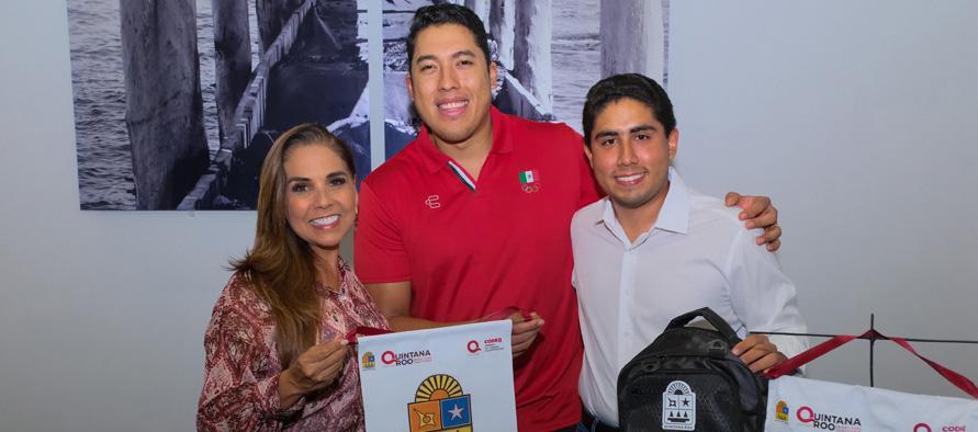 nosa, se reunió con el atleta cancunense Carlos Sansores Acevedo, quien fue abanderado de manera simbólica con el Escudo de Q. Roo. “A nombre de todo Q. Roo te hacemos entrega de este banderín que lleva el escudo de nuestro estado, sabemos que portas con gran orgullo la bandera de México, pero queremos que también lleves contigo a Quintana Roo, porque todo el estado está contigo y desde aquí te estaremos alentando”.