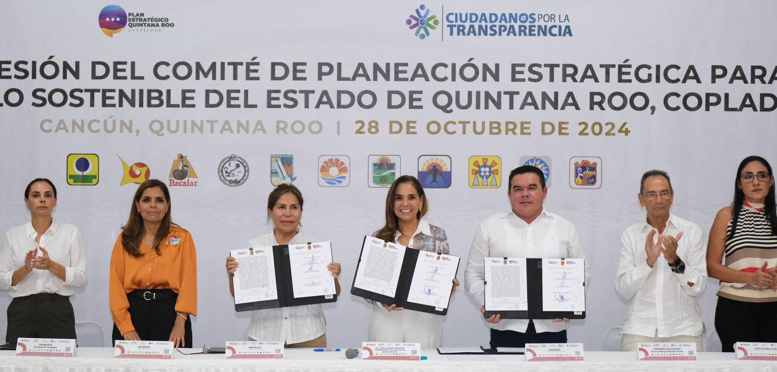 La gobernadora Mara Lezama Espinosa y la Secretaria de Finanzas y Planeación, Martha Parroquín Pérez, encabezaron la Primera Sesión del Comité de Planeación Estratégica para el Desarrollo Sostenible del Estado de Quintana Roo 2025-2050, organizada por la SEFIPLAN en la Biblioteca Nacional de la de la Crónica de Cancún.