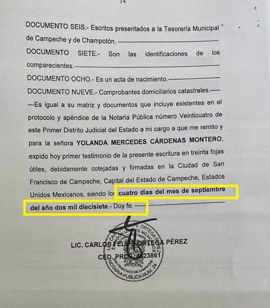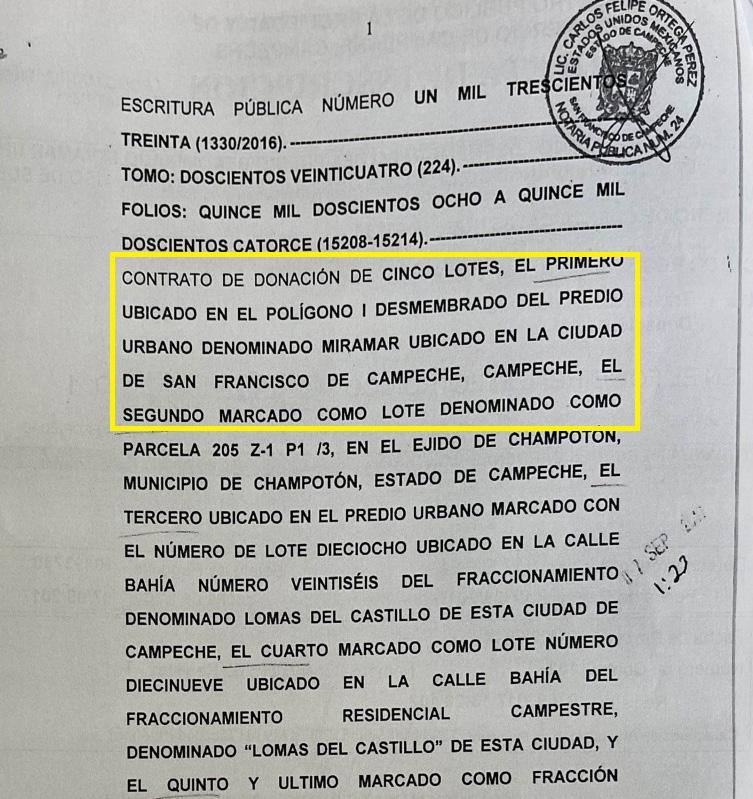 Donación de bienes de Alito Moreno a Yolanda Cárdenas, entre ellas el expropiado por el Gobierno de Campeche.