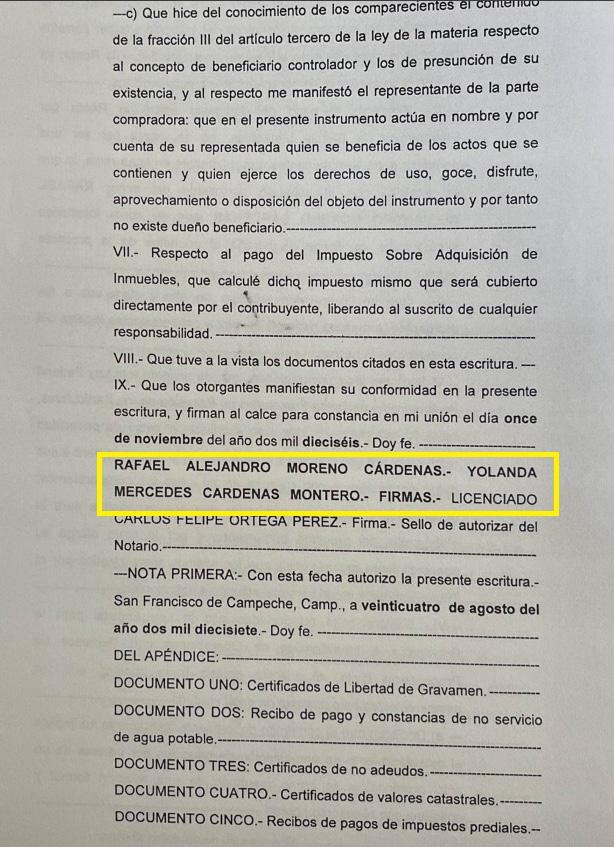 res propiedades, una a nombre de Yolanda Mercedes Cárdenas Montero y dos de Juan José Salazar Ferrer, madre y arquitecto de cabecera de Alejandro Moreno Cárdenas, fueron expropiadas por el Gobierno de Campeche, que encabeza Layda Sansores.
