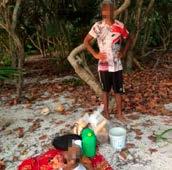 Uno de los hombres estaba recostado sobre una cobija y en la arena, este, es quien parecía estar delicado de salud, porque no se levantó y quedó en el suelo. estaba sin camisa, solo con un pantalón. La balsa fue asegurada por