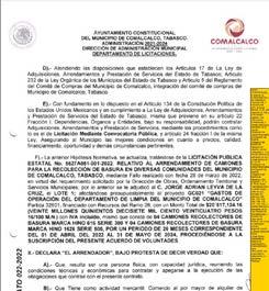 Los denunciantes señalan que si el Ayuntamiento de Comalcalco hubiera decidido comprar los ocho camiones de basura, habría erogado menos que los 20 millones 517 mil 124.16 pesos que terminará pagado al finalizar el arrendamiento por 26 meses.