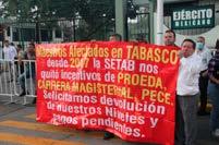 Por ello, maestros de la carrera magisterial arribaron a la 30 Zona Militar de Villahermosa, donde se realiza la conferencia de prensa del presidente previo a su gira de trabajo