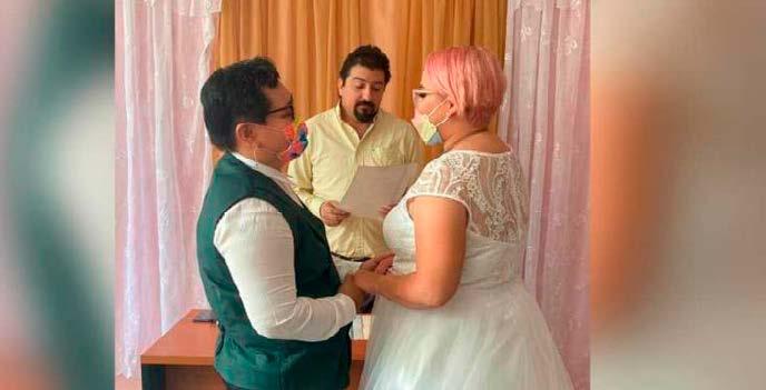 Una pareja de mujeres estrenó la reforma al matrimonio igualitario en Tabasco, luego de contraer nupcias en las instalaciones del Registro Civil de Palacio Municipal de Centro, sin necesidad de amparo
