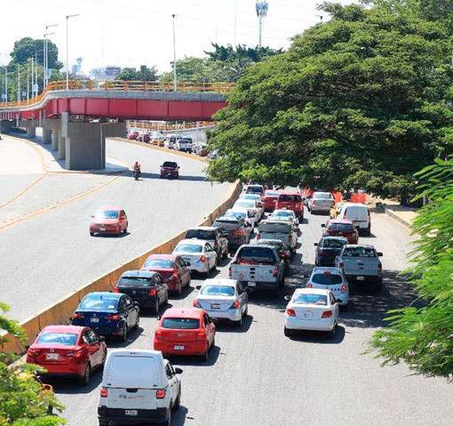 construcción del paso superior vehicular sobre el boulevard Adolfo Ruiz Cortines, de Avenida Universidad hacia Tabasco 2000, uno de los tramos que más conflictúan a los automovilistas que circulan en la zona.