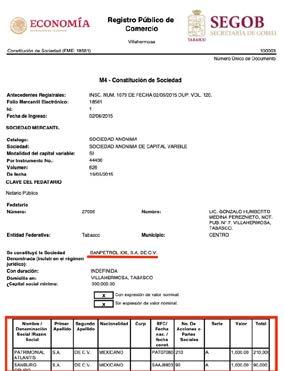 de Sanburg Grupo desaparece como empresa socia y su lugar es ocupado por Corporación Sánchez SA de CV, una de las razones sociales que utiliza Abarrotera Super Sánchez.