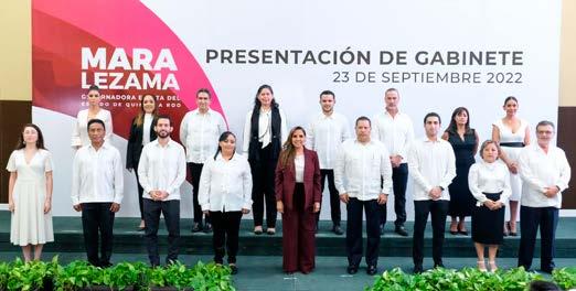 Además, en el gabinete de la nueva gobernadora, el poder femenino también está presente, pues ocho de las 15 dependencias tendrá de titular a una mujer: María Cristina Torres Gómez, Secretaría de Gobierno; Karla María Almanza López, Secretaría de Economía; Reyna Arceo Rosado, Secretaría de Contraloría; Irazú Marisol Sarabia May, Secretaría de Obras Públicas; Josefina Hu guette Hernández Gómez, Secre taría de Medio Ambiente; Linda Saray Cobos Castro – SEDARPE; Flor Ruiz Cosío, Secretaría del Trabajo y Previsión Social; y Alma Alvarado Moo, Instituto Quinta narroense de la Juventud