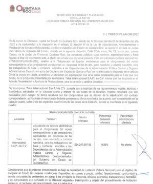 Para la compra de los vales, SEFIPLAN lanzó la licitación LPN8/SEFIPLAN-OM-2022 el pasado 16 de noviembre, donde solo se presentó la empresa TOKA Internacional SAPI de CV, y el 2 de diciembre Ángel Rubén Medina Linares, Director de Procedimientos de Contratación de SEFI-