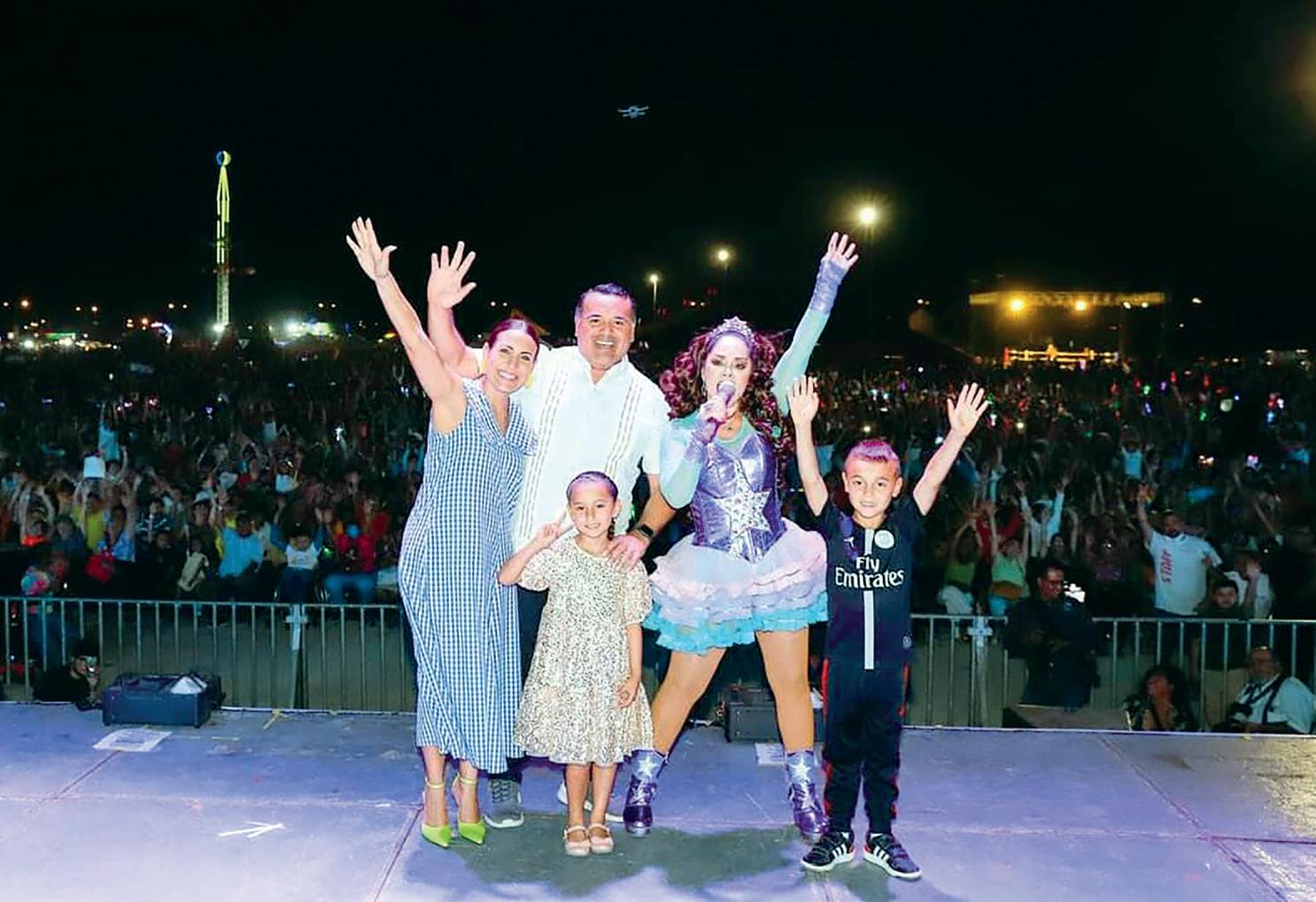 El Alcalde Renán Barrera Concha también reconoció estar muy contento y su esposa Diana, su niño Renán y su niña Daniela, con miles de niños y familias con la presentación del grandioso Show de Tatiana.