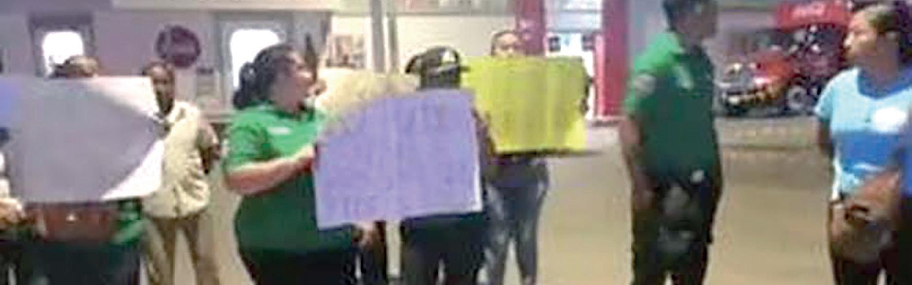 Ex alcalde del PRI envía a sus despachadores de gasolina a protestar frente al palacio municipal contra la Presidenta Municipal por no permitir el funcionamiento de una gasolinera propiedad del