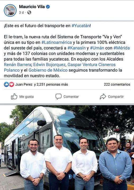 trabajando en equipo por Yucatán y Mérida. Ambos supervisaron la unidad de prueba del nuevo sistema de transporte eléctrico Ie-tram, el cual busca impulsar la modernización del transporte público en la Zona Metropolitana de Mérida. Ahí se conjuntarán los otros dos municipios conurbados de la capital yucateca, Umán y Kanasín, cuyas autoridades municipales también se suman a los esfuerzos de unidad y trabajo en equipo a favor de los ciudadanos.