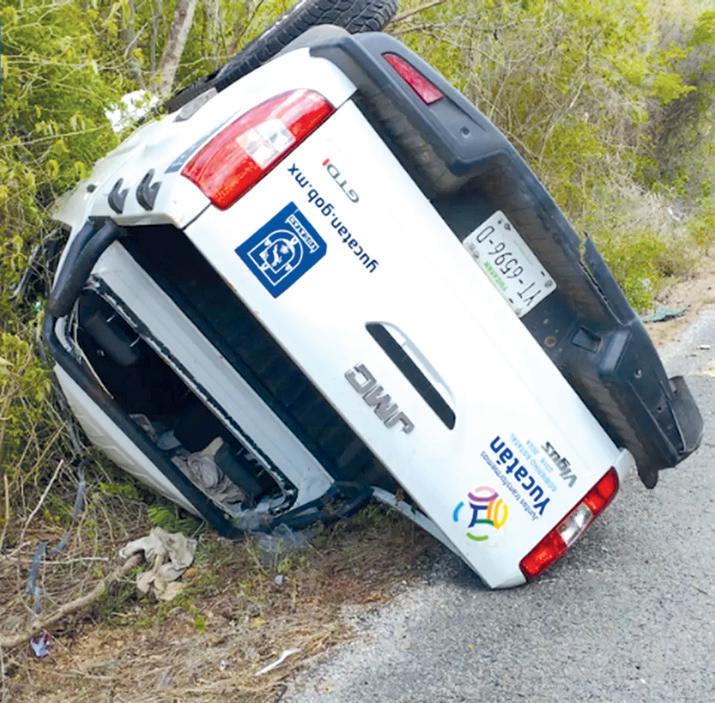 Tres lesionados, dos de los cuales tuvieron que ser llevados a hospitales, fue lo que dejó la volcadura de una camioneta en el tramo carretero Kinchil-Tamchén, misma que fue causada por un perro que se atravesó en el camino del vehículo.