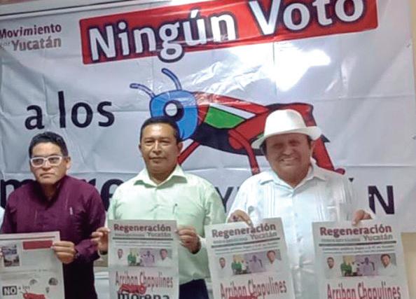 “Con desilusión decimos que no representan el espíritu de lucha que tanto hemos promovido en Morena por la justicia y los principios de nuestro partido”. Ante este panorama, Nolasco Sosa indicó que el trabajo que realizarán en la campaña electoral será el de concienciar e informar a los compañeros militantes y simpatizantes, mediante el periódico “Regeneración en Yucatán”, de la necesidad de un partido auténticamente de izquierda, que defienda verdaderamente las causas sociales y sea congruente a sus principios. “¿Qué ganamos los morenistas impulsando a los ‘chapulines’, aquellos a los que hace poco combatíamos? ¿Ellos representan la verdadera transformación?”. “Impulsar a ‘chapulines’ representa el exterminio del partido en Yucatán y en todo el país, por eso hoy (lunes) en Ciudad de México se llevará a cabo un mitin bajo el lema: ‘No a la imposición de ‘chapulines’ en Morena’ con la participación de compañeros de todos los estados del país.