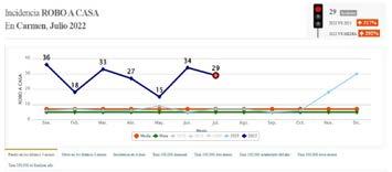 El incremento de un 267% de robos a comercios y del 317% de robo a casa habitación, hasta el corte de julio del 2022 en comparación con la misma temporada del año pasado, preocu pa a la ciudadanía carmelita, quienes aseguran falta de estrategia y voluntad de la Policía Municipal y Estatal para contrarrestar la inseguridad en el mu nicipio de Carmen, sin embargo, la Directora de Seguridad Pública, Via lidad y Tránsito Municipal (DSPVTM) Samantha Bravo Muñoz, justificó que el incremento en los robos a comercios y casa habitación en los últimos meses se debe a que los policías estuvieron en capacitación y hubo poca presencia de agentes en los diversos sectores de la ciudad.