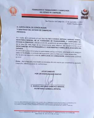 secretario general, obedece a cuestio nesAñadieronpolítica. que al nuevo dirigente de la CTC lo une una estrecha amistad con la gobernadora, Layda Sansores, y tam bién con el director del Instituto de Pes ca y Acuacultura (Inpesca) del estado, Edward Ceballos Alejandre.