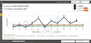 Una de las incidencias delictivas que se ha incrementado en el municipio de Carmen con el gobierno de Pablo Gutiérrez Lazarus, y que no ha sido contrarrestada por el Fiscal de Justicia de Campeche, Renato Sales Heredia, es el narcomenudeo; ya que de acuerdo con estadística publicada por el Semáforo Delictivo de Campeche, de enero a noviembre de este año, se disparó en 47% por ciento este delito, al pasar de 33 en el 2021 a 47 en el 2022; sin embargo, la incidencia delictiva por homicidio se fue