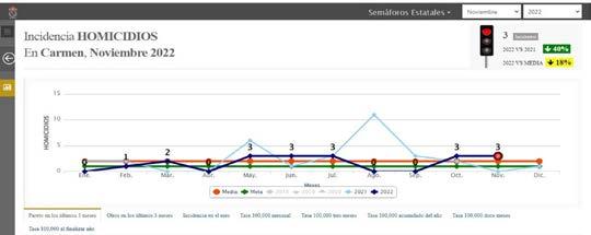 a baja al pasar de 30 casos de enero a noviembre del 2021 a 18 en el mismo periodo del 2022.