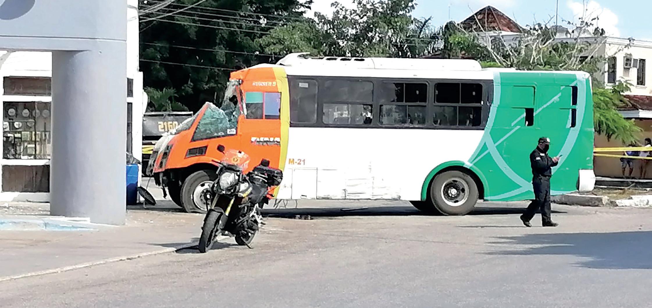 En la calle 23 con 40 del fraccionamiento Residencial Los Pinos, donde el autobús público Mercedes Benz de la ruta Metropolitano Situr, al estar transitando sobre la glorieta, tuvo una falla mecánica y eso provocó que el chofer pierda el control al volante y terminó impactado en la farmacia Yza.