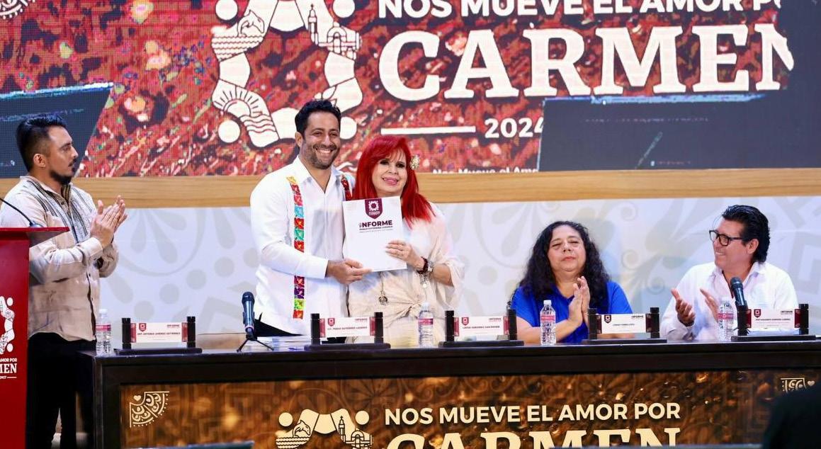 Destacó que las obras de salud, educación, deporte, transporte y desarrollo social y los programas de Amor por Carmen, son auténticas y reales, sostuvo ante la gobernadora Layda Sansores San Román y su hermana Laura, presidenta del Sistema DIF estatal, que fueron invitadas especiales a la rendición de Gutiérrez Lazarus, a quien escucharon con atención, además del Cabildo, también los representantes de los Poderes Legislativo y Judicial del estado, Antonio