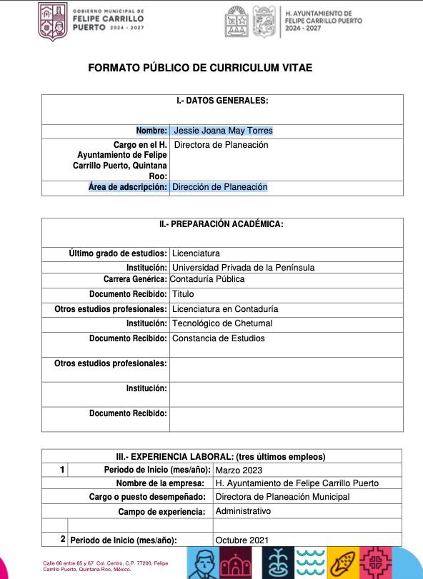 LA PERSONA FÍSICA YENNI MILAY SANTOS CHAN, QUIEN ES SOCIA EN LA EMPRESA CONSTRUCTORA CARRILLOPORTENSE SA DE CV, DE JESSIE JOANA MAY TORRES, SECRETARIA DE PLANEACIÓN DEL AYUNTAMIENTO DE FELIPE CARILLO PUERTO, QUE PRESIDE LA MORENISTA MARICARMEN HERNÁNDEZ, YA ACUMULA CINCO CONTRATOS POR $28.2 MDP PARA OBRAS EN ESE MUNICIPIO