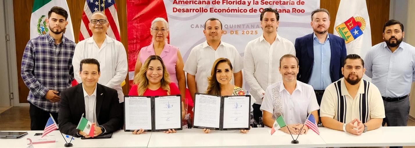 Durante la firma del Memorándum de Entendimiento con la Cámara de Comercio México-Americana de Florida, la gobernadora de Quintana Roo, Mara Lezama Espinosa, destacó que este acuerdo representa una oportunidad para transformar la ubicación geográfica del estado en una ventaja competitiva. “Consolidamos una alianza estratégica que abre el comercio, la inversión y el intercambio de talentos con Florida”, afirmó la mandataria estatal.