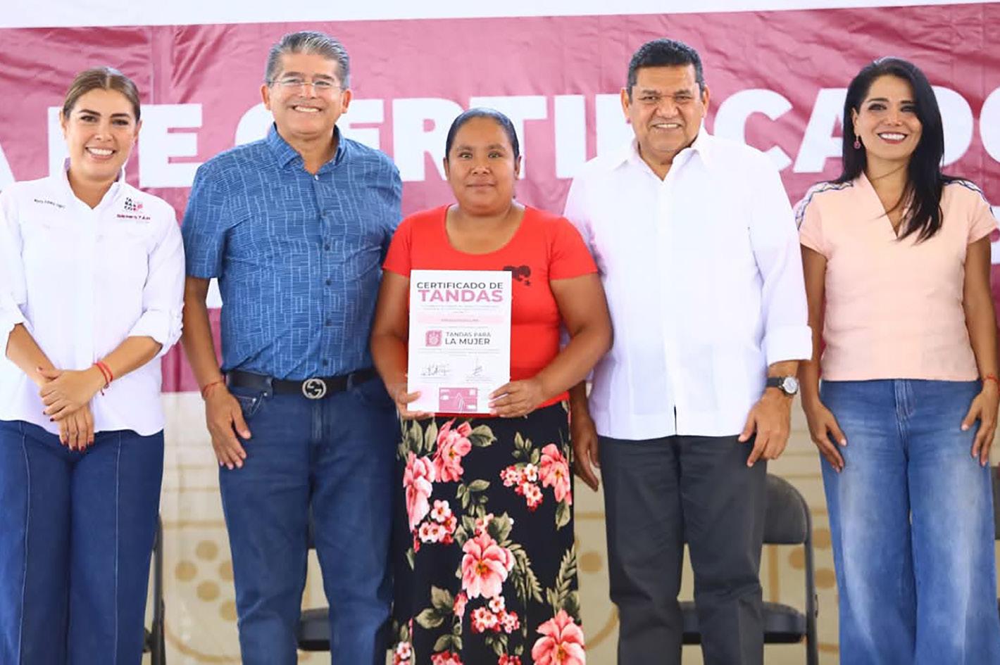 En este acto se entregaron los primeros 600 certificados y tarjetas del Programa de Tandas para la Mujer concretados en Macuspana.