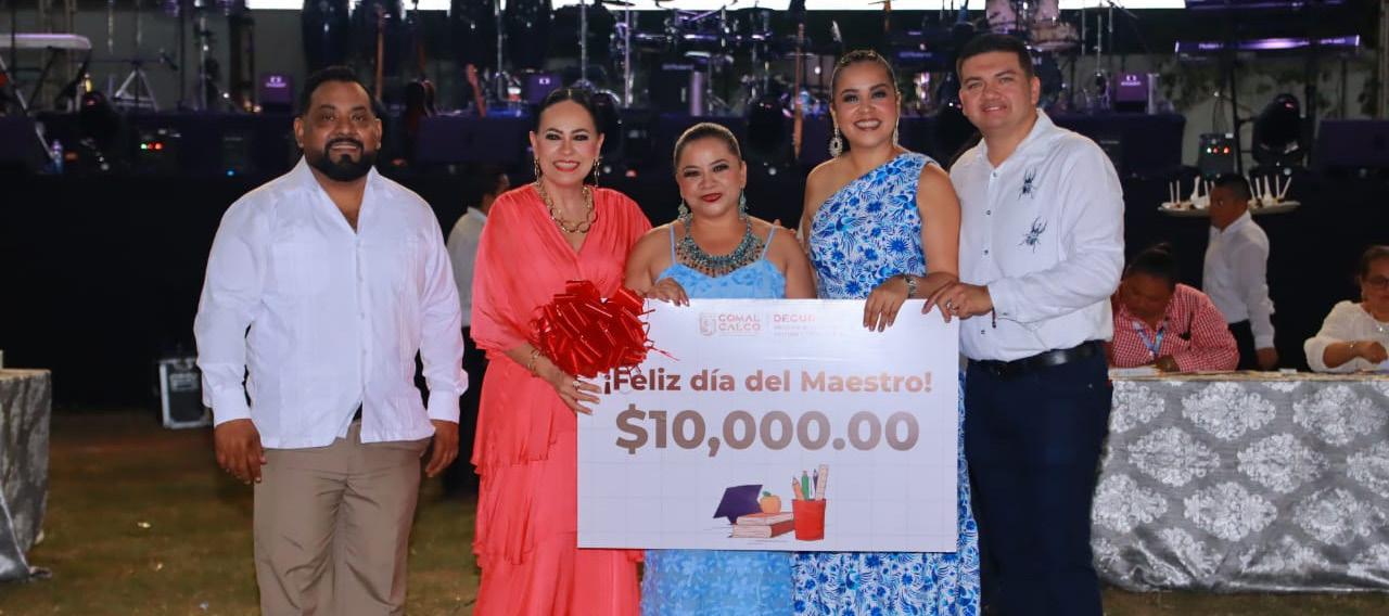 El festejo que esta noche se rinde al magisterio tabasqueño que labora en La Perla de la Chontalpa, se traduce en premios económicos por un monto de 350 mil pesos, sin contar la suma de bocinas, laptops, pantallas Led, lavadoras, refrigeradores, hornos de microondas y minisplits, unas 68 piezas-regalos que también se obsequiaron durante la velada.