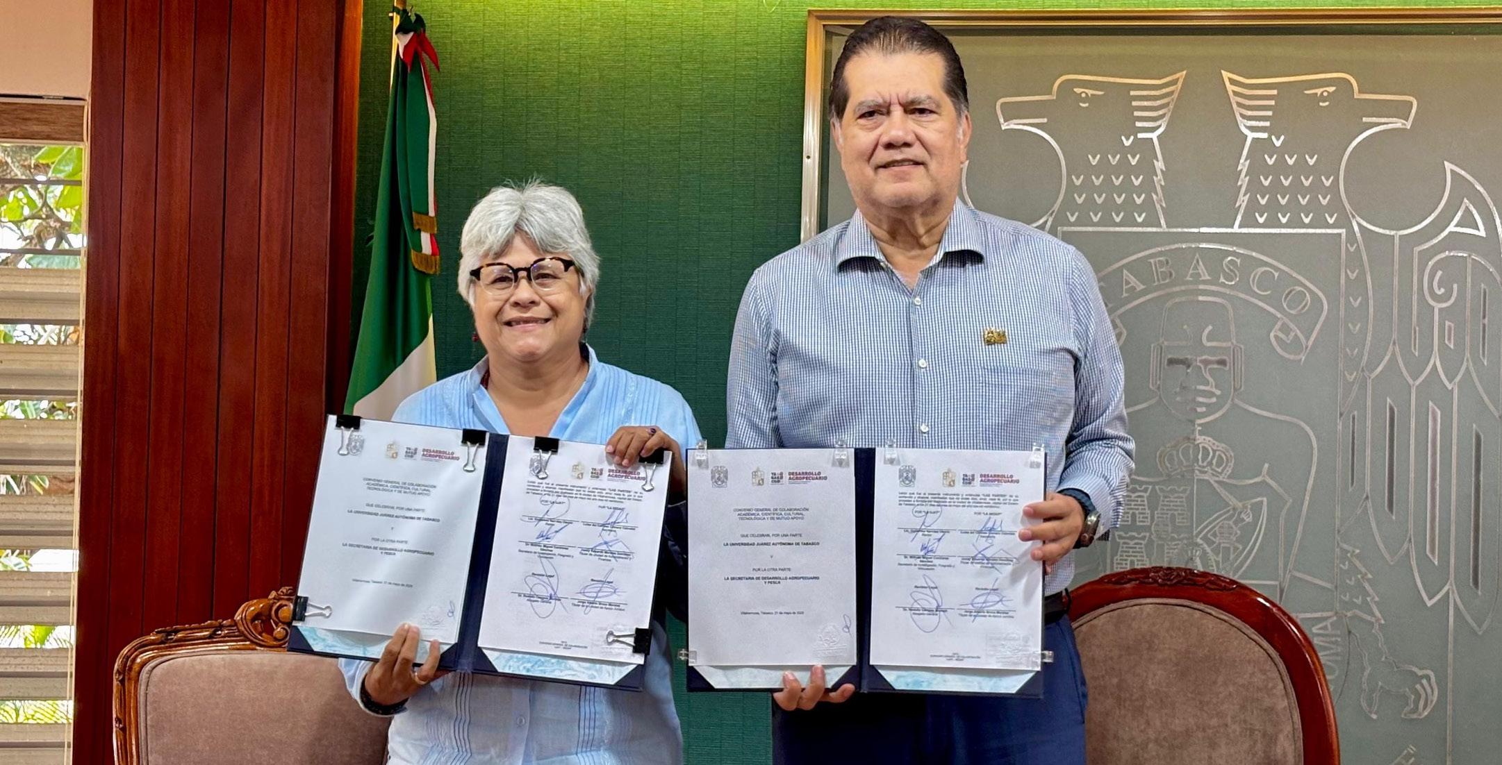 Un importante convenio de colaboración firmaron la Secretaría de Desarrollo Agropecuario y Pesca (SEDAP) y la Universidad Juárez Autónoma de Tabasco (UJAT) cuyo objetivo es establecer las bases de cooperación entre ambas instituciones para el máximo aprovechamiento de recursos humanos, materiales y financieros en el desarrollo de acciones conjuntas de interés y beneficio mutuo.