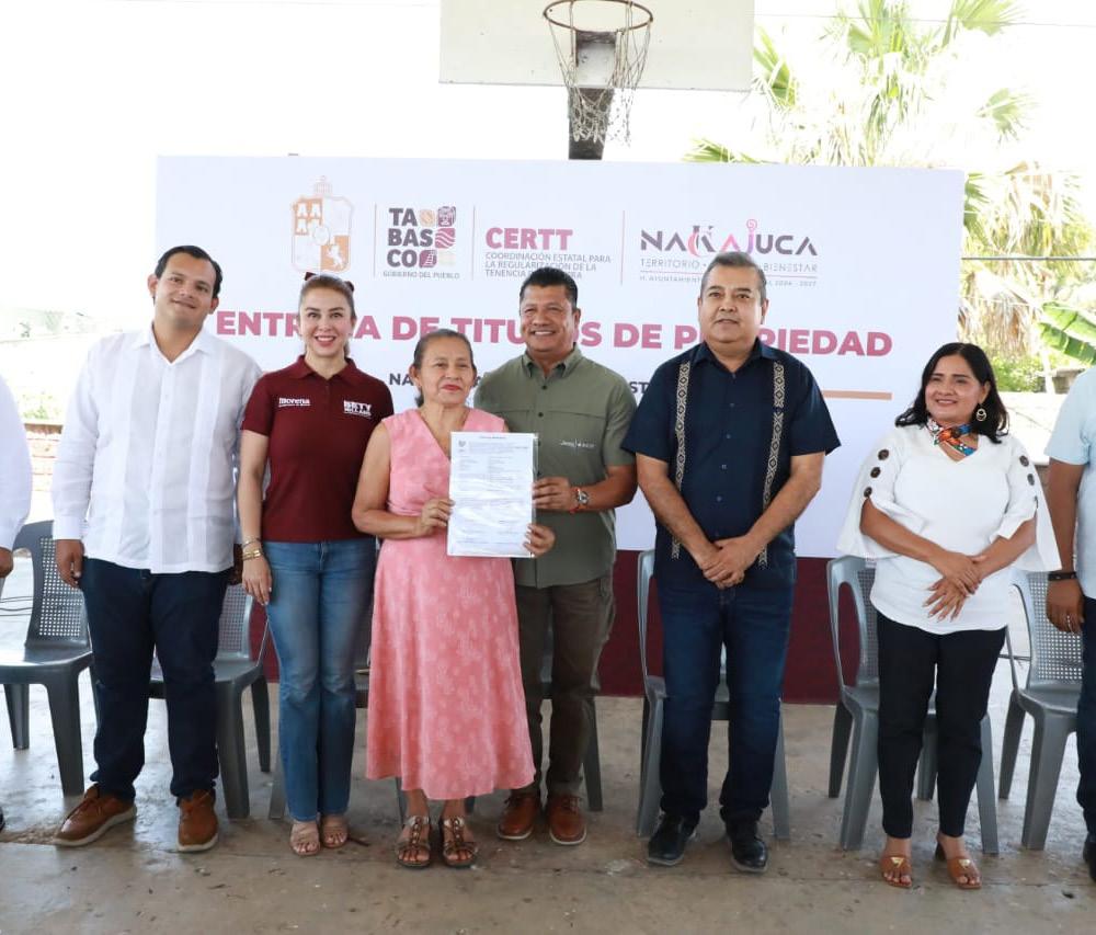 Correspondió al titular de la Coordinación Estatal para la Regularización de la Tenencia de la Tierra (CERTT), Francisco Sánchez Ramos y al presidente municipal de Nacajuca, Roberto Ocaña Leyva entregar los 62 documentos que acreditan la legítima posesión, a más vecinos de esta demarcación.