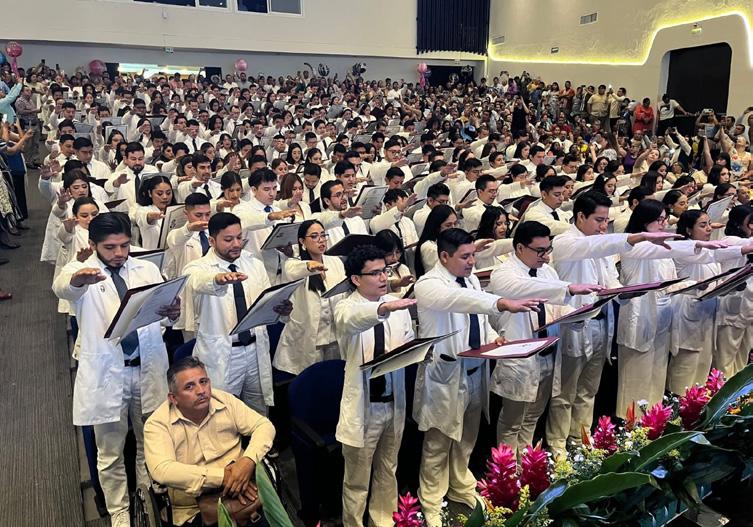 Una mañana llena de alegría se vivió en el Teatro Universitario de la Universidad Juárez Autónoma de Tabasco (UJAT), donde la División Académica de Ciencias de la Salud (DACS) celebró la ceremonia de Titulación de la Licenciatura en Médico Cirujano de 207 titulados, así como la colocación de su bata blanca, símbolo que los distingue como nuevos profesionistas de la salud, de manos de los integrantes del presídium y de los docentes invitados que los acompañaron durante su formación académica.