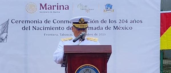 mandante de este Mando Naval mencionó: cada vez que evocamos nuestra historia, el corazón de la Patria late más fuerte. Nos convoca una fecha llena de símbolos y de memoria: el 4 de octubre. Cabe mencionar que esta celebración se remonta a los inicios del México independiente, el 4 de octubre de 1821, cuando el General Agustín de Iturbide, ante la necesidad del joven Estado mexicano de contar con una Armada para salvaguardar la Soberanía Nacio-
