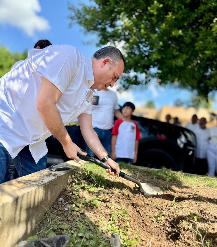 estuvo encabezada por el Gobernador Javier May Rodríguez. Acompañado del presidente munici- pal de Teapa, Miguel Ángel Contreras Verdugo, el mandatario tabasqueño puntualizó que la finalidad de esta acción es la de recuperar parte del suelo y que vuelva a regenerarse. “Cada vez hay más conciencia en nuestro pueblo. Tenemos que cuidar nuestros árboles, protegerlos, para darles a nuestros hijos, nietos un mejor planeta”, mencionó. Para lograr tal objetivo, agregó, desde el Gobierno del Pueblo se están reactivando todos los viveros del Estado como ‘Las Lilias’ en ese municipio;