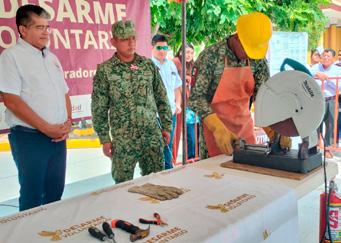 horas, para hacer entrega de armas de fuego, municiones o explosivos, a cambio de un incentivo económico; acto que se realiza de forma anónima, voluntaria y sin consecuencias jurídicas. Durante la instalación del módulo de desarme voluntario, el director general de Prevención de la Violencia de la SSPC del Gobierno Federal, Alfonso Gordillo Vázquez, destacó el trabajo que en Tabasco se realiza.