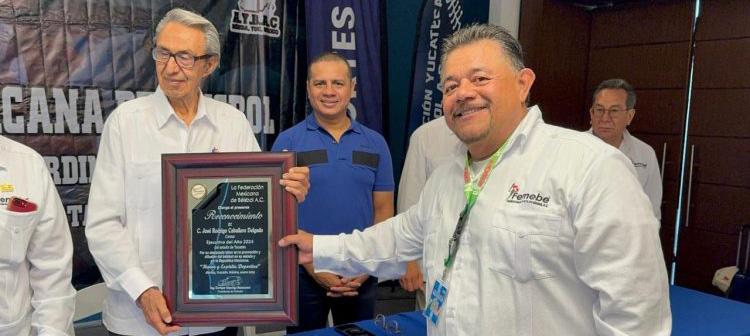 En el marco de la Asamblea Electiva de la Federación Mexicana de Béisbol (Femebe), celebrada en el Hotel Mesón de la Luna de Mérida, José Rodrigo Caballero Delgado fue premiado como “Ejecutivo del Año Nacional” por su labor hecha durante el año pasado en el béisbol yucateco. “Es un honor recibir este reconocimiento y dejar mi granito de arena en el béisbol yucateco. Continuaremos trabajando para seguir fortaleciendo el béisbol, se vienen grandes proyectos para el Estado”, comentó Caballero Delgado tras recibir el premio nacional. Durante el año anterior, José Caballero Delgado, a través de la Asociación Yucateca de Béisbol, realizó el Campeonato Nacional de la categoría U9, participó en cinco campeonatos nacionales y comenzó con el proyecto del béisbol femenil. Asimismo, recibió un reconocimiento por el primer lugar obtenido en el Campeonato Nacional Femenil de Mayores, celebrado en mayo pasado en la Ciudad de México.