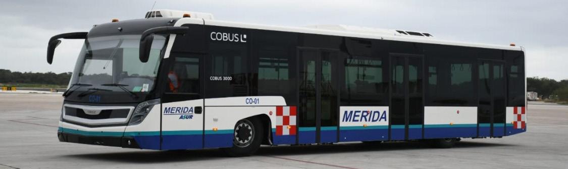 El COBUS 3000, diseñado específicamente para operar en aeropuertos, tiene capacidad para 110 pasajeros y está adaptado para facilitar un embarque y desembarque más ágil,