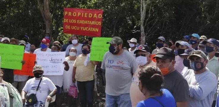 Pobladores de Ucu han venido denunciando y pidiendo la intervención de las autoridades estatales y federales para frenar el despojo de tierras que daña a las familias de las comunidades ejidales, al mismo tiempo que buscan evitar que la mafia inmobiliaria deje sin tierras al estado y se pongan en riesgo la autosuficiencia alimentaria que es una actividad que realiza la gran mayoría de hombres y mujeres del campo para su consumo y una pequeña parte para los la comercialización. Y además desorden, discriminación, basura y contaminación a comunidades de ejidatarios. Denuncian que se han venido manifestando en contra de acciones de abuso de despojo de tierras y violación a sus derechos como ejidatarios que se pretende, señalan a un grupo de empresarios especuladores de tierras afectando el patrimonio de más de 320 desde hace más de 8 años y nadie los ha escuchado, que solo le dan largas y “atole con el dedo”. Acusan que “empresarios inmobiliarios y loteros” les han arrebatado predios con engaños y amenazas, cometiendo injusticias y estafas de empresarios que, bajo