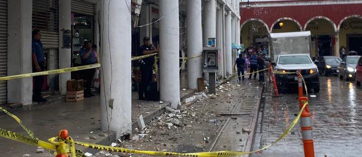 El mercado Lucas de Gálvez presentó desprendimiento de una parte de cornisa de la fachada, por lo que se retiró a los vendedores ubicados en el área.