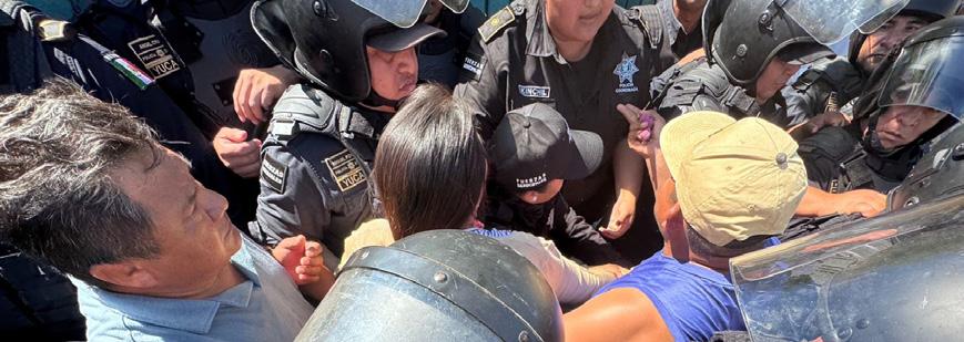Es por ello que los inconformes convocaron a ejidatarias, ejidatarios y población en general a sumarse a su movilización para impedir el desarrollo de la asamblea. Sin embargo, el Comisario Ejidal José A. Borges, acudió a la reunión con un contingente de elementos de la policía estatal y municipal, quienes restringieron el acceso a la Casa Ejidal.