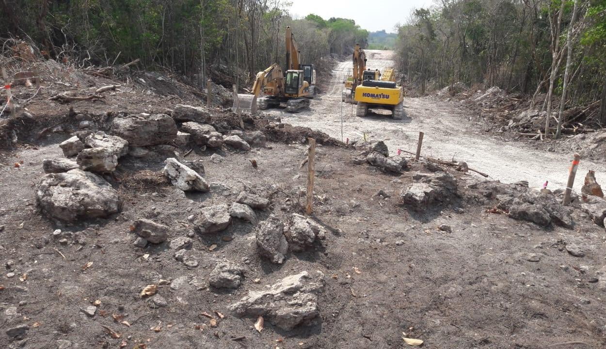 En una sección del predio se aprecian drenes para desalojar agua de lluvia y la conformación de un camino de acceso trazado con maquinaria pesada y cubierto con “sascab”. También se encontraron perforaciones en el subsuelo, la construcción de una estructura fija de concreto al costado, así como un sistema de riego por aspersión. La superficie afectada es de 350 hectáreas afectadas.