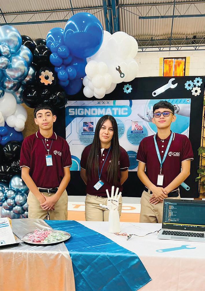 El Centro Educacional La Caridad en Esqueda, logró pasar a la final con su proyecto Signomatic, una mano robótica diseñada para traducir el lenguaje oral a señas, facilitando el aprendizaje de estudiantes con discapacidad auditiva. Este proyecto, que promueve la inclusión educativa, fue desarrollado por los estudiantes Francisco Manuel Baldenegro Jiménez, Gabriel Eduardo Caciano Gutiérrez y Keila Sujey Castillo Navarro, bajo la asesoría de la Mtra. Karen Stephanie León Villa. Otro de los proyectos presentados fue ADN, que propone un método sencillo para extraer ADN de manera rápida y accesible. Tiene como objetivo ayudar a identificar personas desaparecidas y facilitar investigaciones en casos de secuestros o desastres, ofreciendo una herramienta valiosa para las familias afectadas. El proyecto fue desarrollado por los estudiantes Linneth Arianna Aguilar Díaz, Ana Lilia Morales Martínez y Grettell Irlanda González Reyes, bajo la asesoría de la Mtra. Sandra Alicia Cervantes García. Además, Energías Limpias, fue un proyecto en el que los estudiantes Axel Elian Hernández Santiago, Erick Gamaliel Jiménez Gallegos y Avril Sayuri Domínguez Inocente, asesorados por la Mtra. Martha Zuzuarregui, presentaron una propuesta para sensibilizar a las comunidades vulnerables sobre los beneficios de las energías limpias. El proyecto busca mejorar el acceso a electricidad en zonas remotas y combatir la desinformación sobre estas tecnologías.