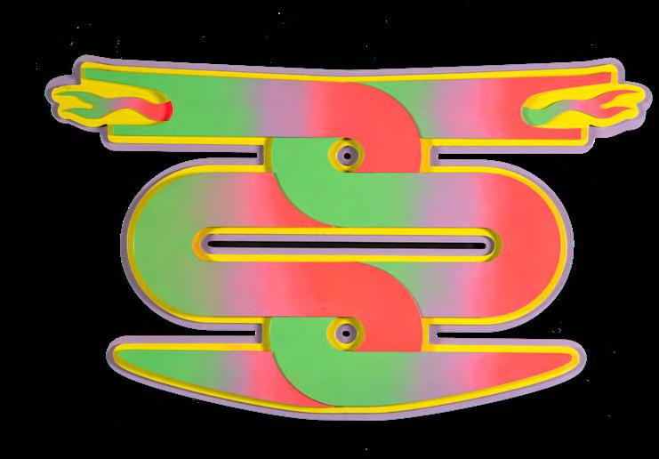 Entre sus obras, llamaron la atención la gallina tornasolada hecha de ysypo, en colaboración con el artista Diego Esquivel de Tobatí, las 15 piezas gigantes de madera calada dispuestas en forma de rompecabezas y el carrito de lomito del futuro customizado.