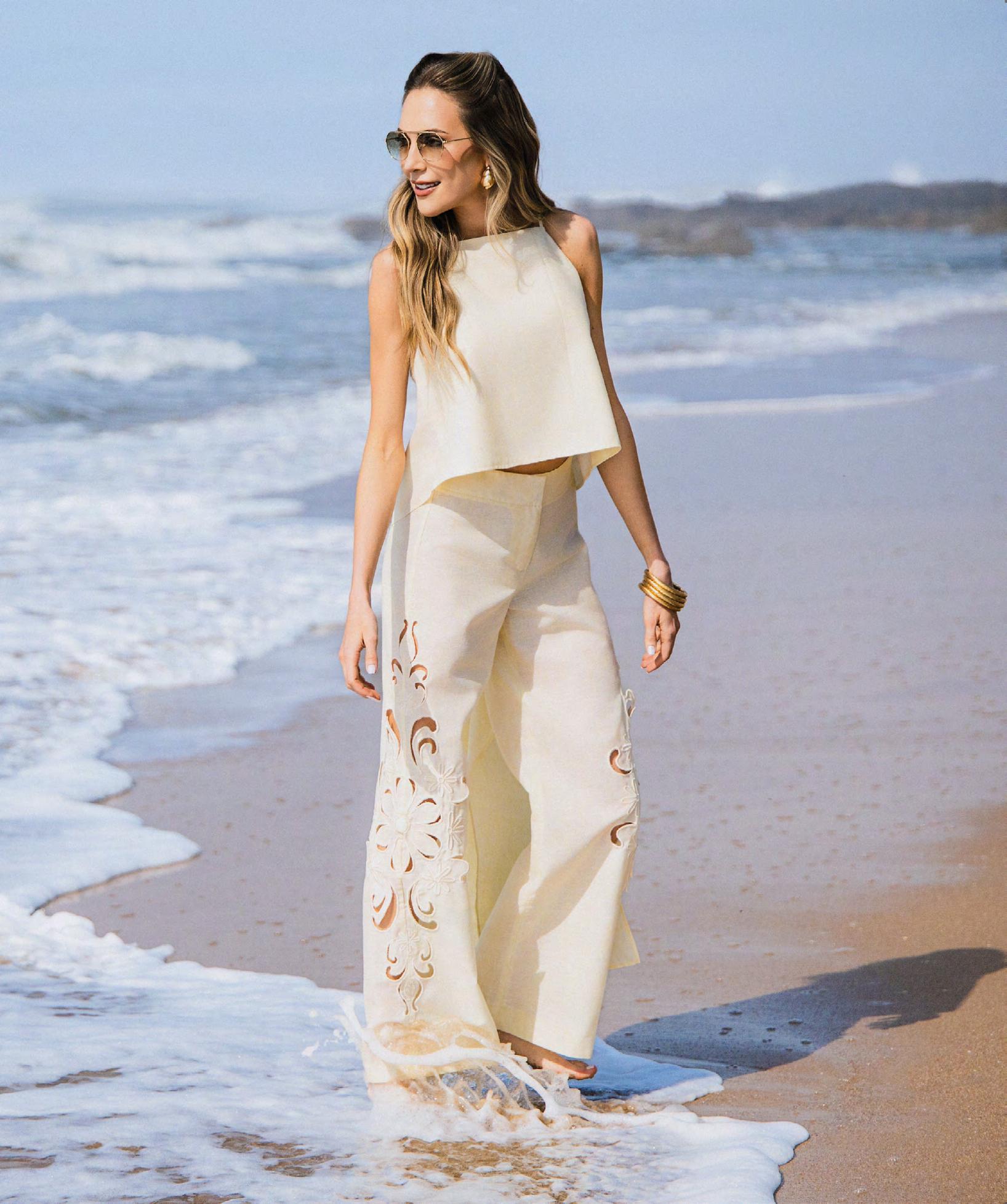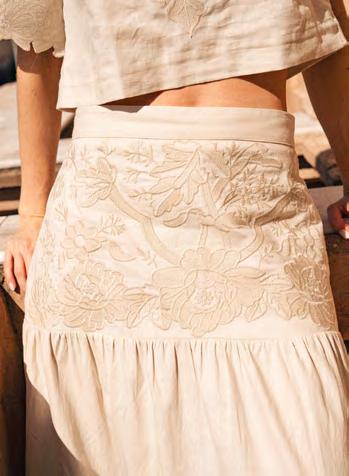 Para Saiach, el lujo no está en lo efímero, sino en la permanencia, en piezas que trascienden temporadas y conservan su valor con el paso del tiempo. Esa mirada se traduce en creaciones que evocan el paisaje del litoral, los esteros y la vegetación, reinterpretados desde un lenguaje contemporáneo. Su identidad sudamericana se percibe en los materiales, en la manera de bordar, en la paciencia del trabajo hecho a mano y en los gestos orgánicos que defnen cada diseño.